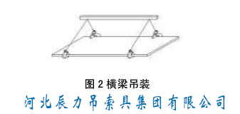 3.1   橫鉗的基本用法如圖2所示,通過橫梁連接,組成兩對橫鉗。特別提示:橫鉗的安全工作載荷是指一對(兩只)橫鉗的載荷;起吊鋼板厚度是指吊鉗安全起吊鋼板的厚度范圍,吊鉗的實際開口度應大于鋼板的厚度。吊裝前必須首先檢查鋼板的重量和板厚是否與橫鉗匹配。